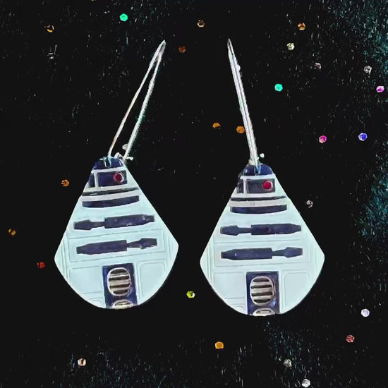 If you are like us and can't choose just one favorite Galactic Droid, then these are for you! Pick your favorite duo with these Galactic Droid Mix-n-Match Dangle Earrings inspired by six of our favorite Star Wars droids! These teardrops are made of a variety of materials including black and white matte acrylic, burgundy, green, blue orange and black pearlescent marble and blue, orange, red and gold mirrored acrylics, all laser cut to perfection and assembled by hand.