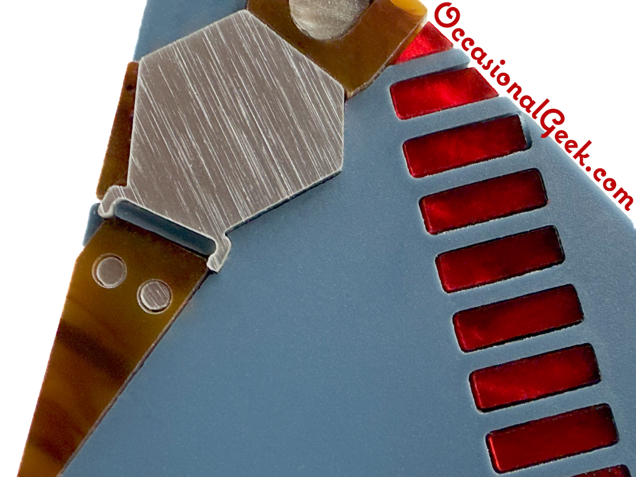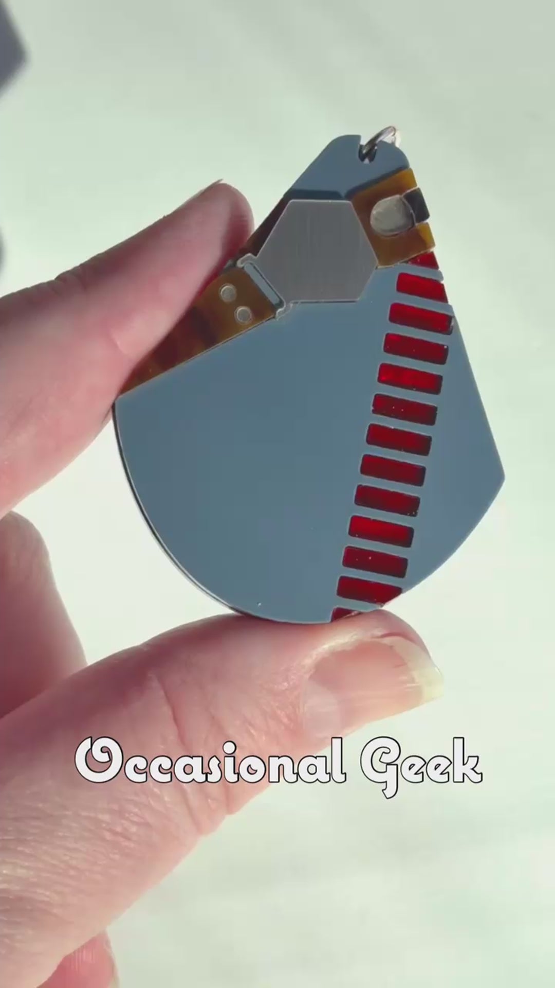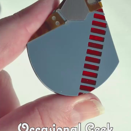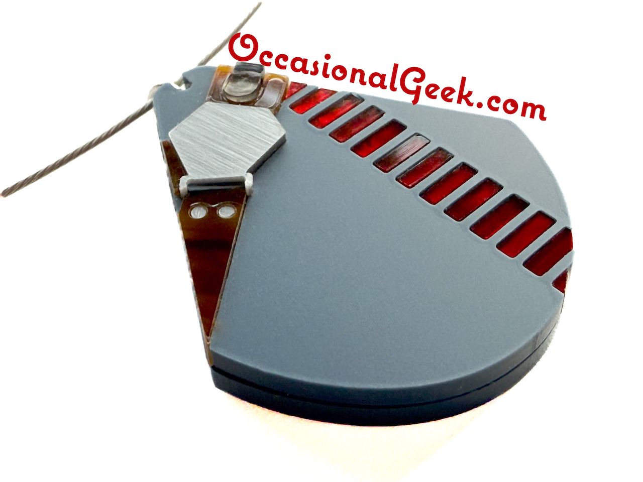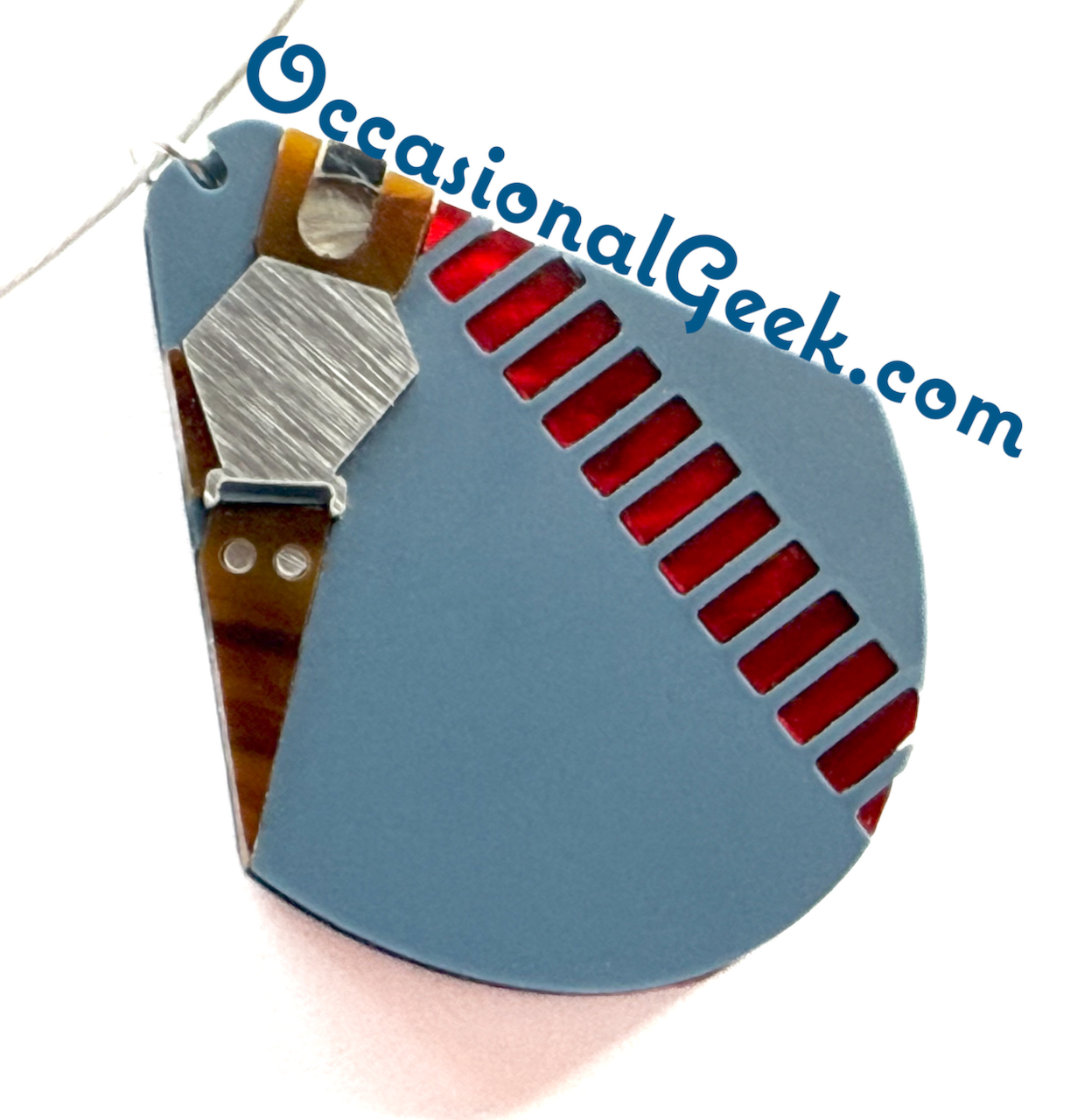 If you are you ready to take the Kessel Run in 12 parsecs then this Scoundrel Statement Pendant is a must! Inspired by Han Solo from Star Wars, this teardrop pendant is made of denim blue acrylic inlaid with metallic silver and marbled acrylics in red, brown, silver and black, with more denim blue acrylic on the back, all laser cut to perfection and assembled by hand.