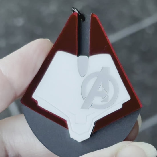 This pendant is an elegant bold statement inspired by Avengers: Endgame quantum travel suits. The base of the teardrop is a striking textured matte black acrylic layered with white matte acrylic, gorgeous silver metallic acrylic and a mirrored red acrylic that gleams in the light. All laser cut to perfection and assembled by hand.